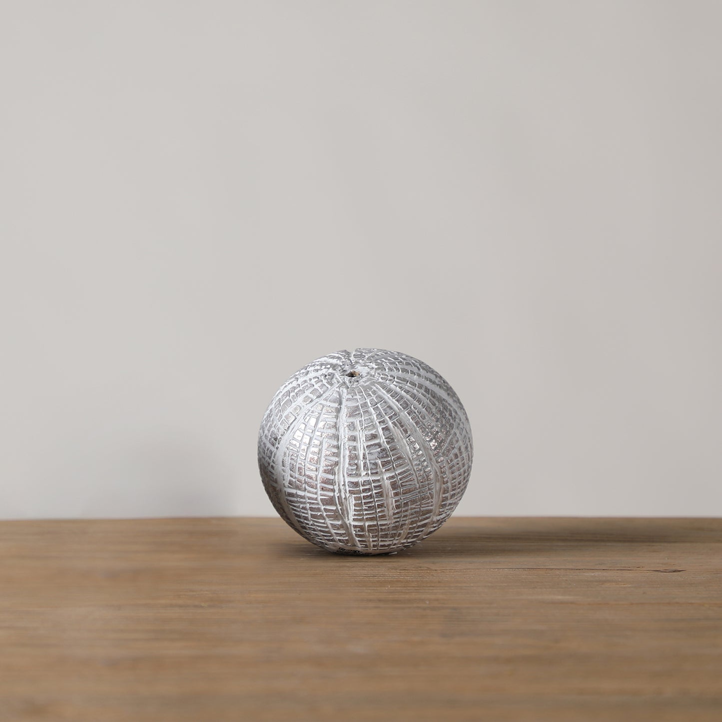 These Arbor Artefacts Decorative Spheres bring a touch of elegance to any room. Available in bronze or white polyresin, the small sphere has a diameter of 80 and the large has a diameter of 100. Add a touch of shimmer and burnished finish to your decor.