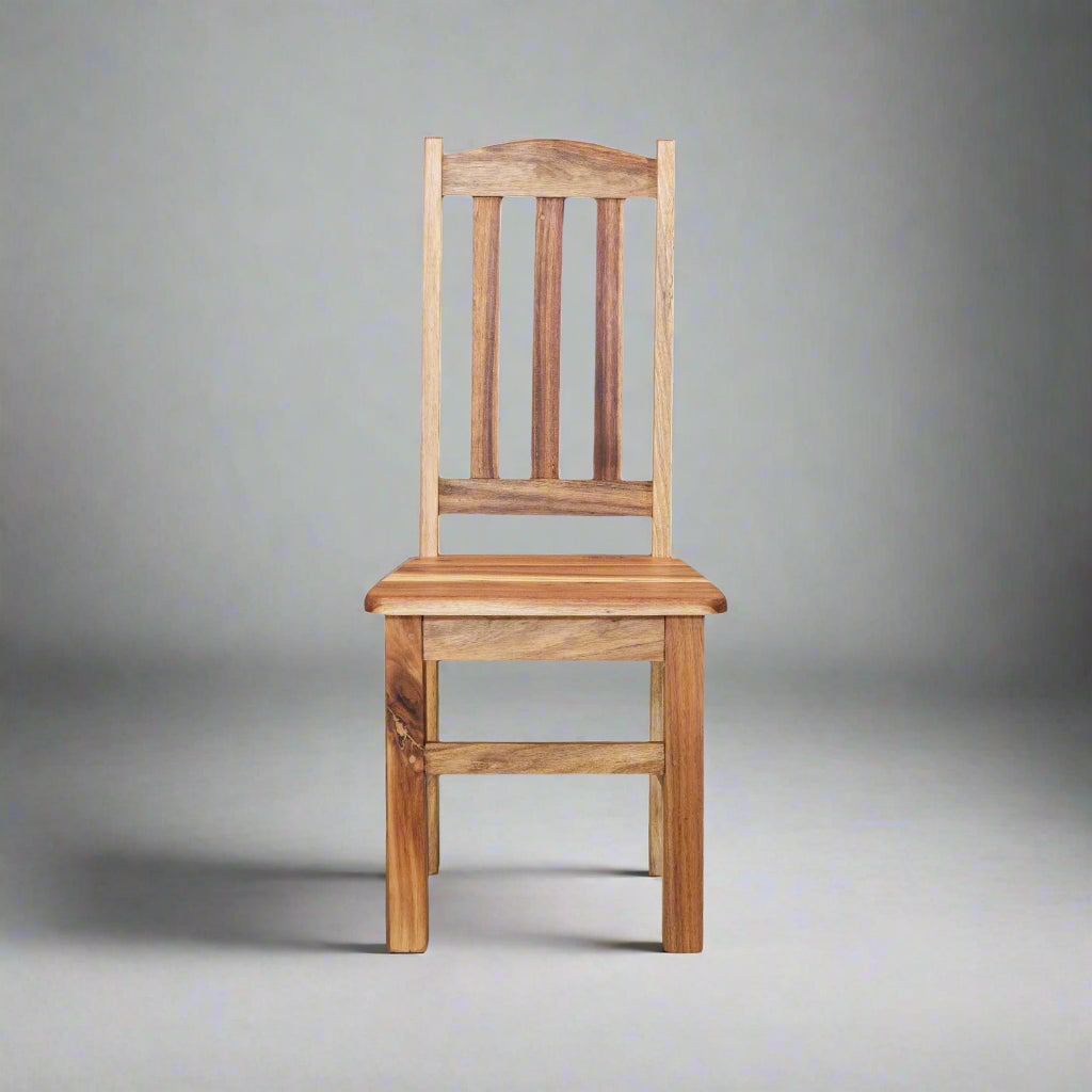 This classic dining chair is a perfect blend of form and function. Crafted from solid Blackwood with a natural, warm finish, this chair adds a touch of timeless elegance to any dining room. The sturdy construction and comfortable design make it perfect for everyday use or special occasions.
