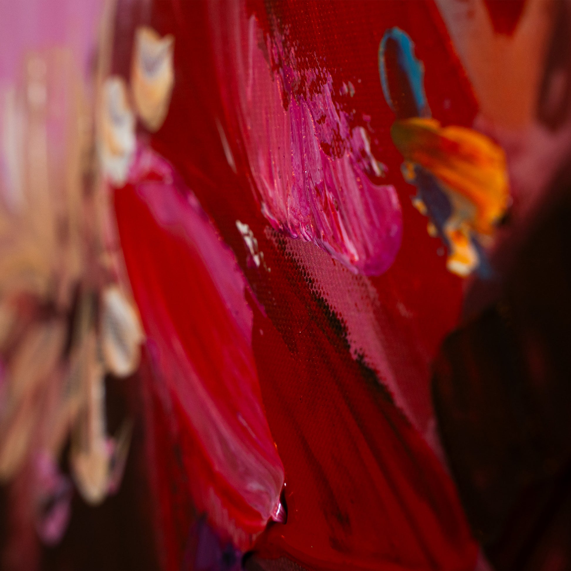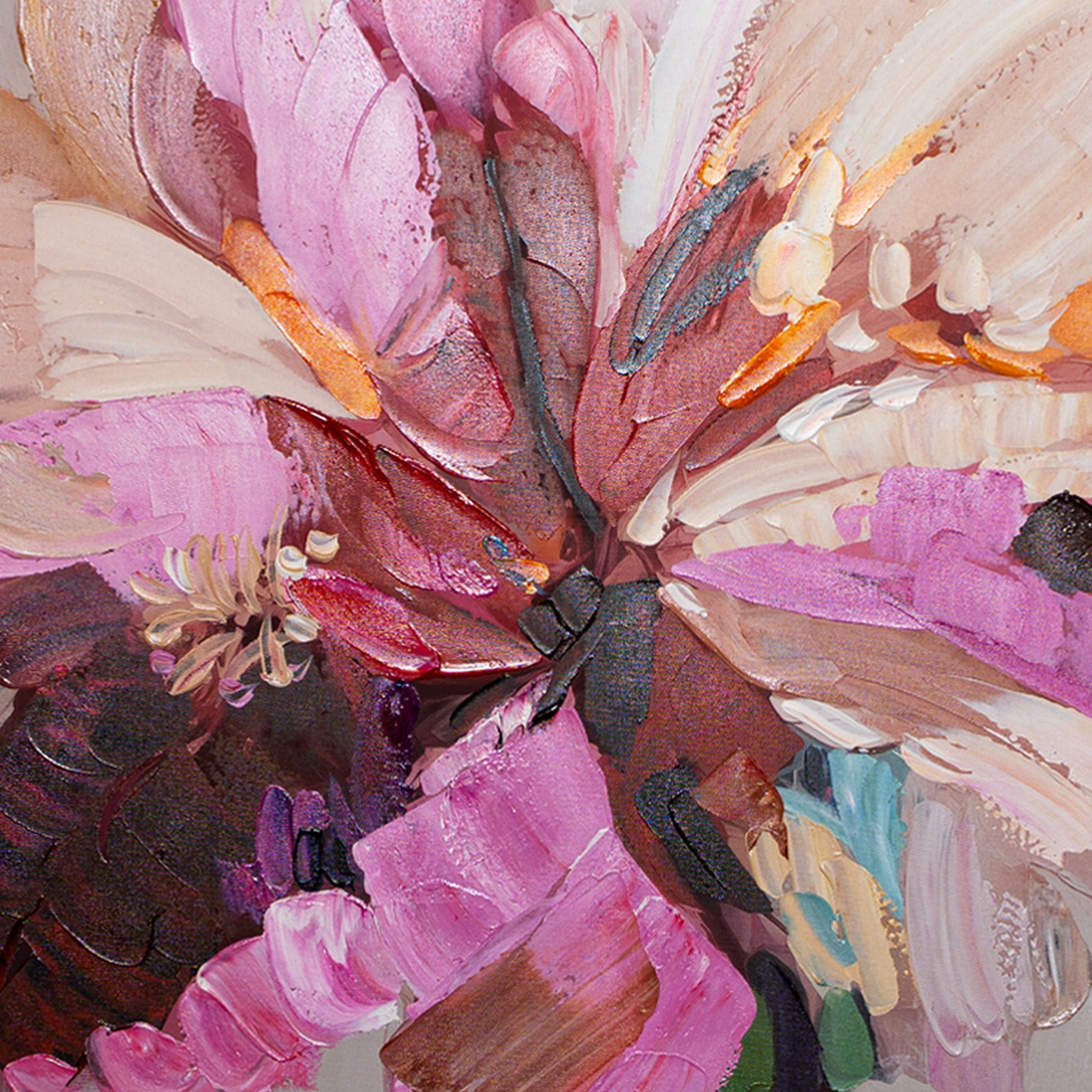 "Botanical Biss", from the Floral Selections collection, is a vibrant textured and framed piece of art. Hand-painted with acrylics, this 800 W x 800 H canvas adds a touch of color and nature to any room. Bring the beauty of a botanical garden into your home with this stunning piece.