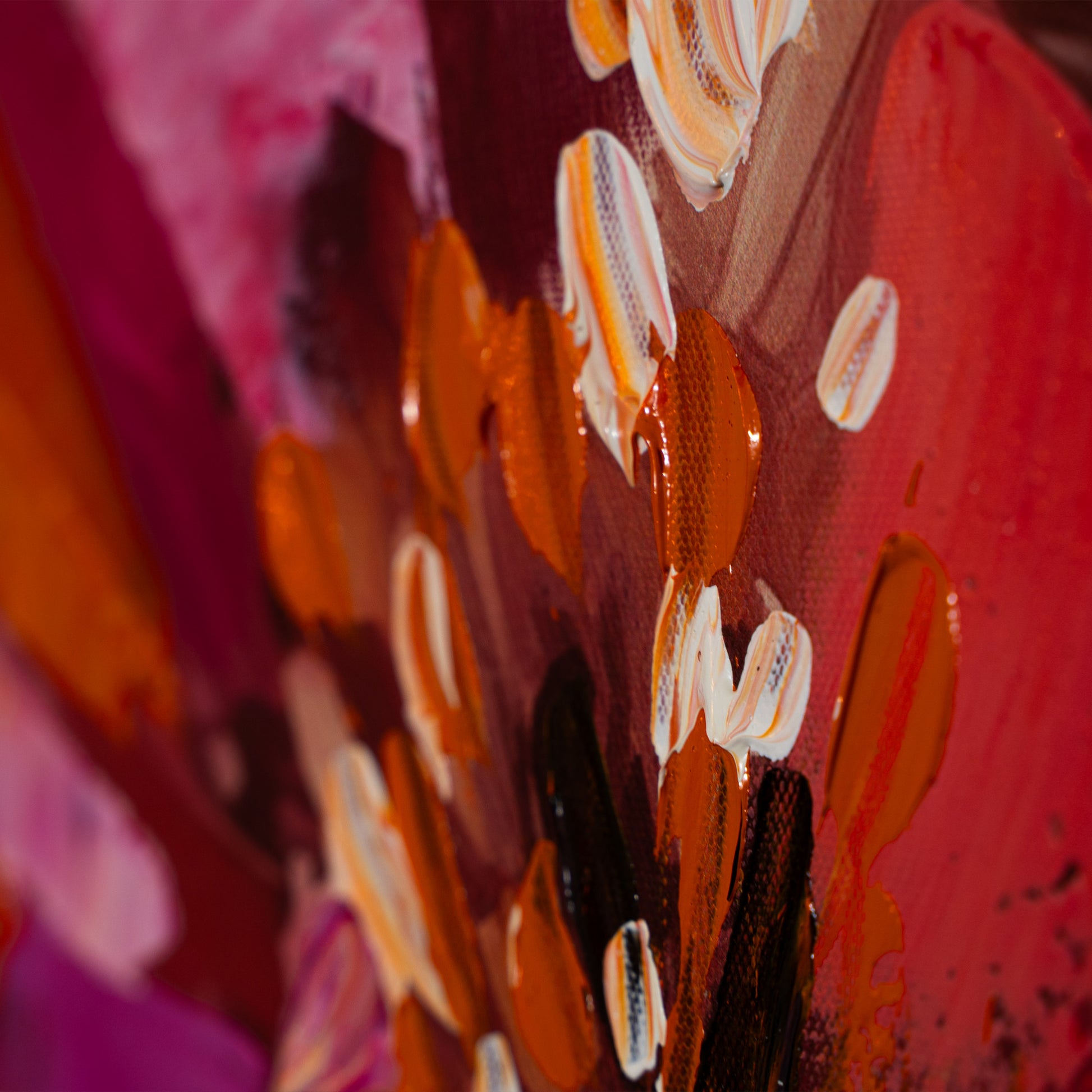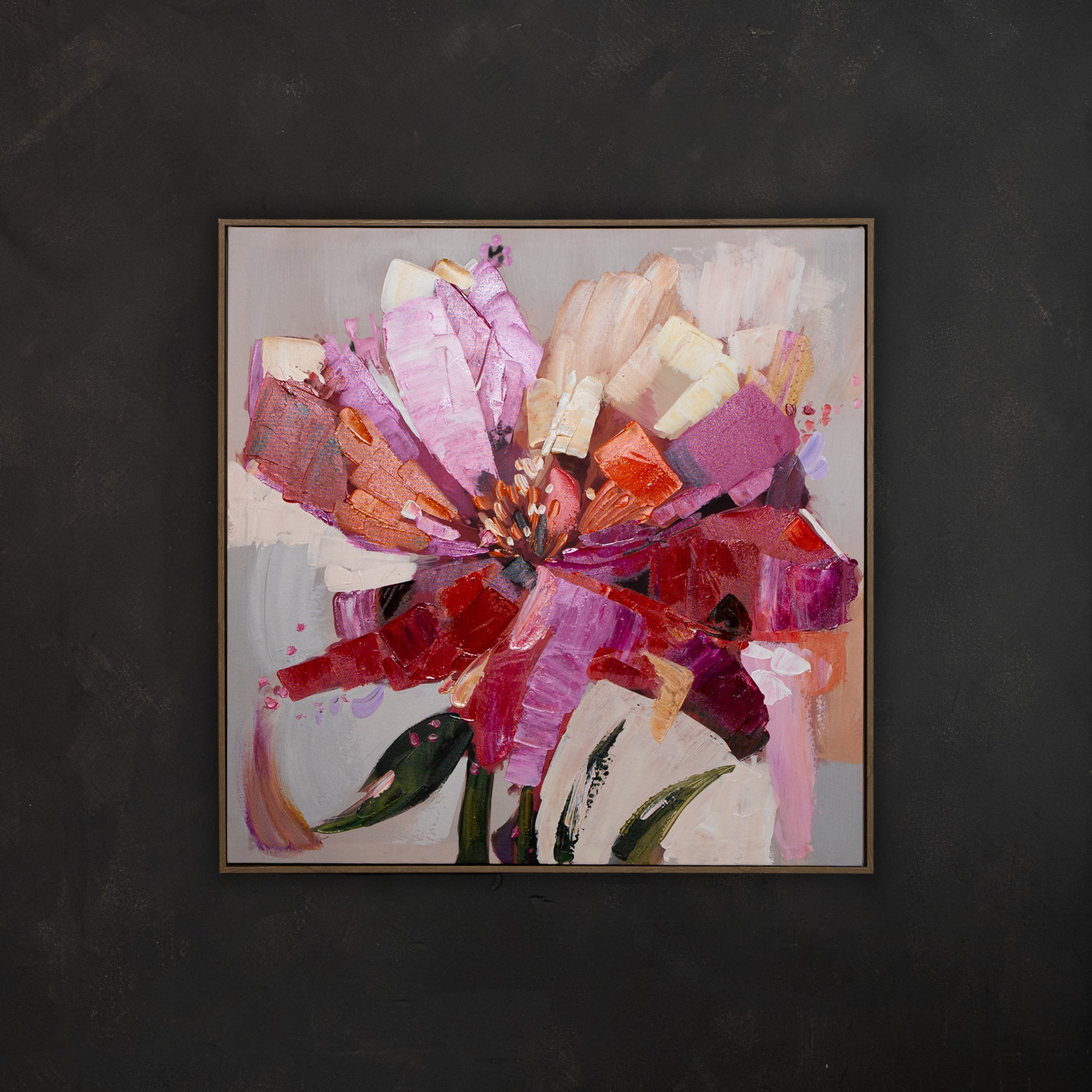 "Botanical Blooms", from the Floral Selections collection, is a vibrant textured and framed piece of art. Hand-painted with acrylics, this 800 W x 800 H canvas adds a touch of color and nature to any room. Bring the beauty of a botanical garden into your home with this stunning piece.
