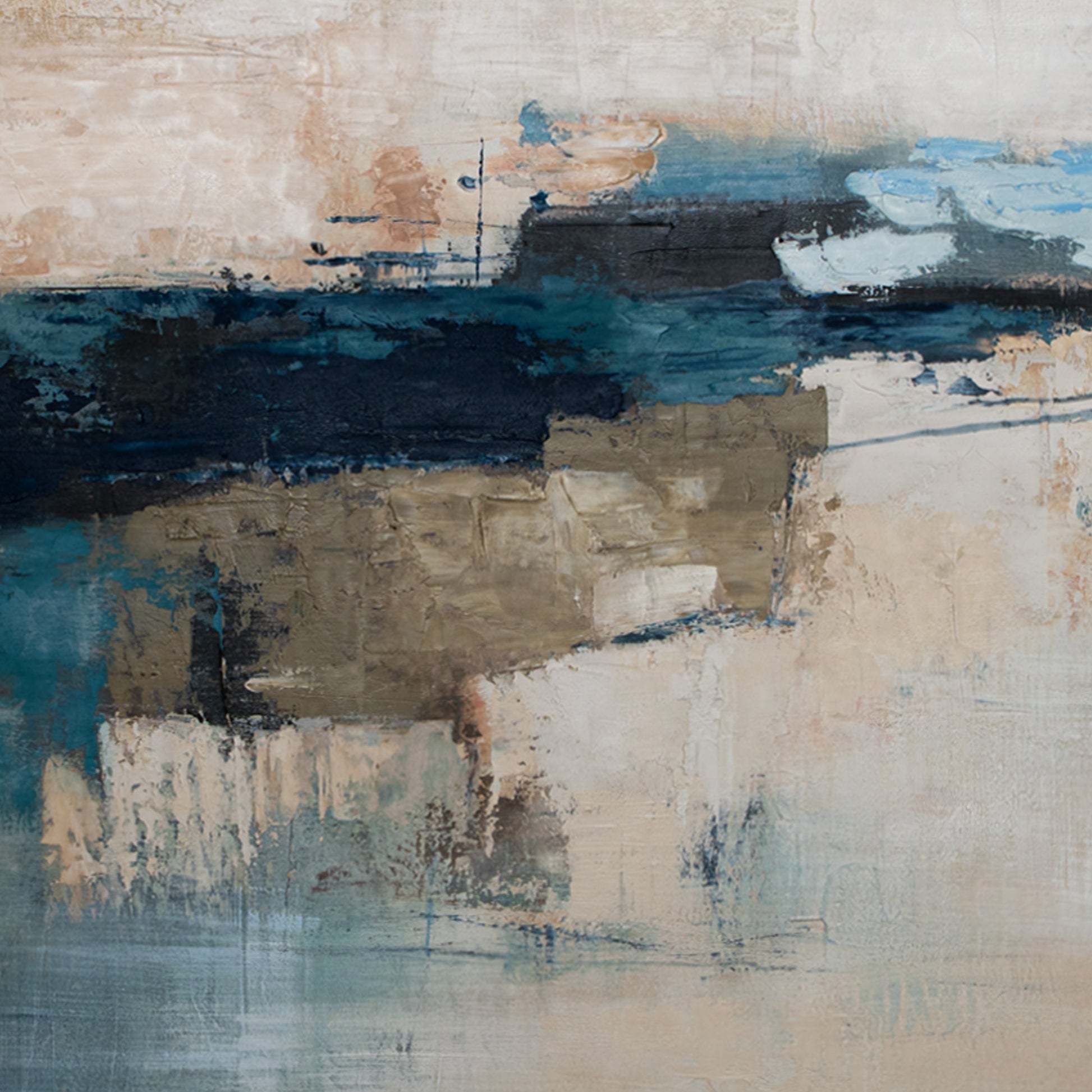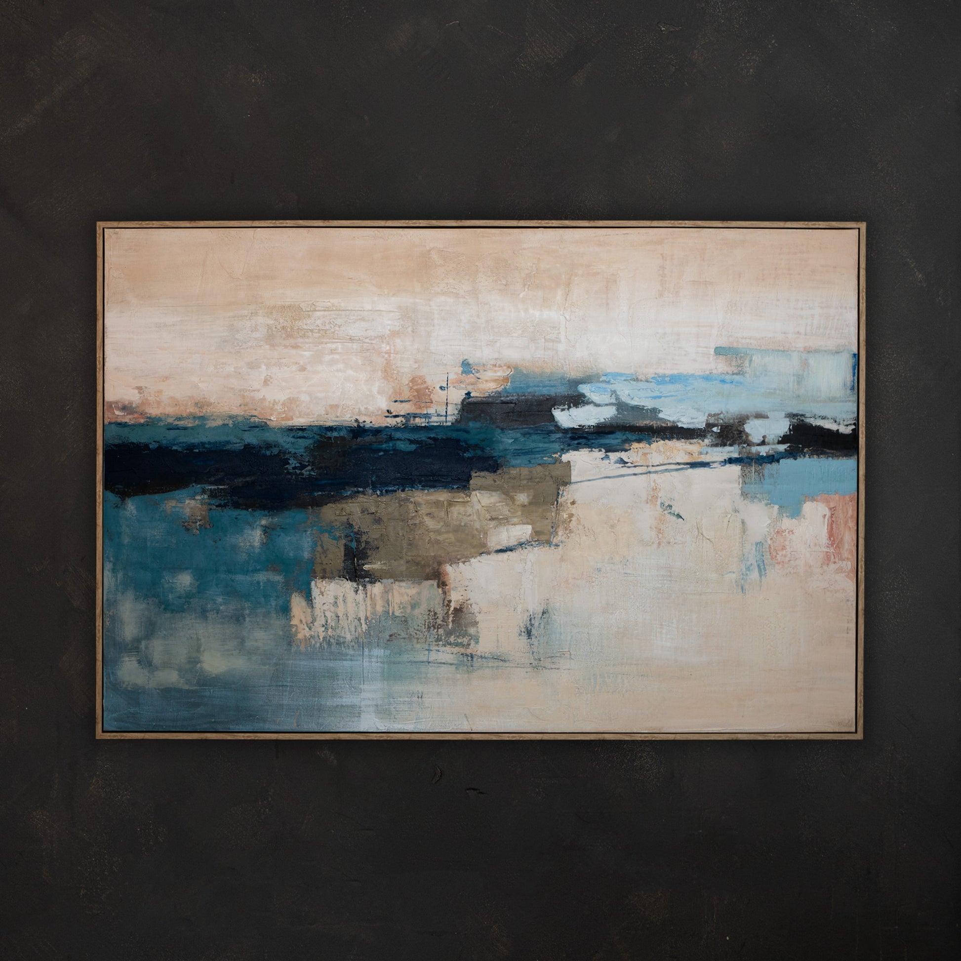 This Marine Mosaic - Seaside framed piece combines 1000 H x 1500 w dimensions with abstract acrylic hand-painting. Enjoy a unique and visually stunning addition to your home decor, crafted with expert precision and an eye for marine-inspired design.