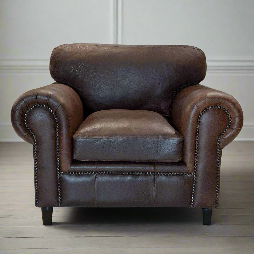 Indulge in ultimate comfort and style with the Namib Leather Armchair. This classic armchair features a timeless design with rolled arms, button-tufted detailing, and sturdy wooden legs. Upholstered in your choice of premium leather, this chair offers a luxurious and inviting seating experience.