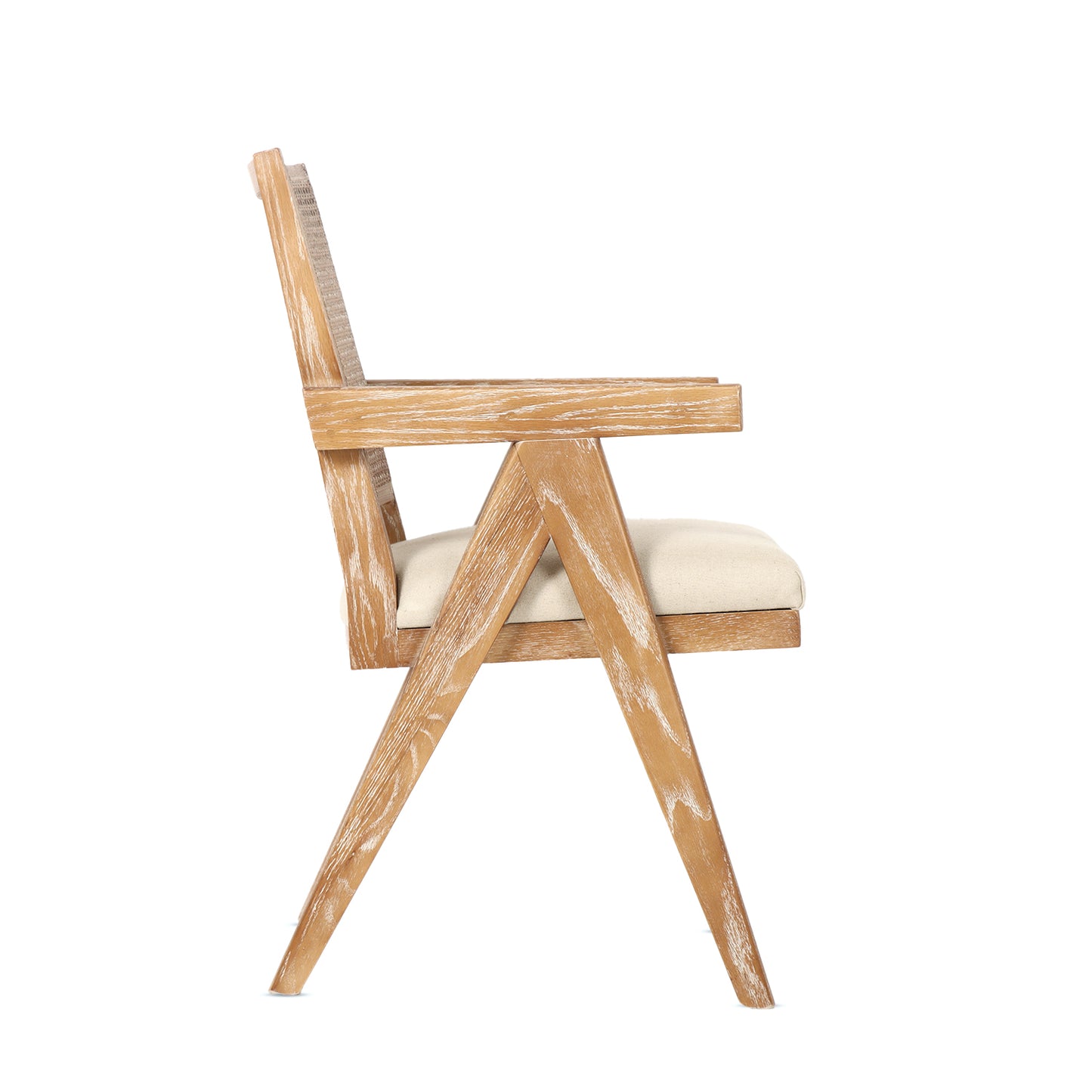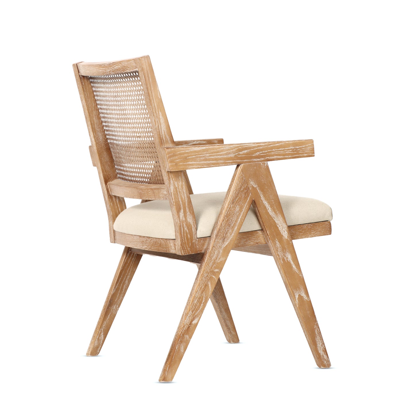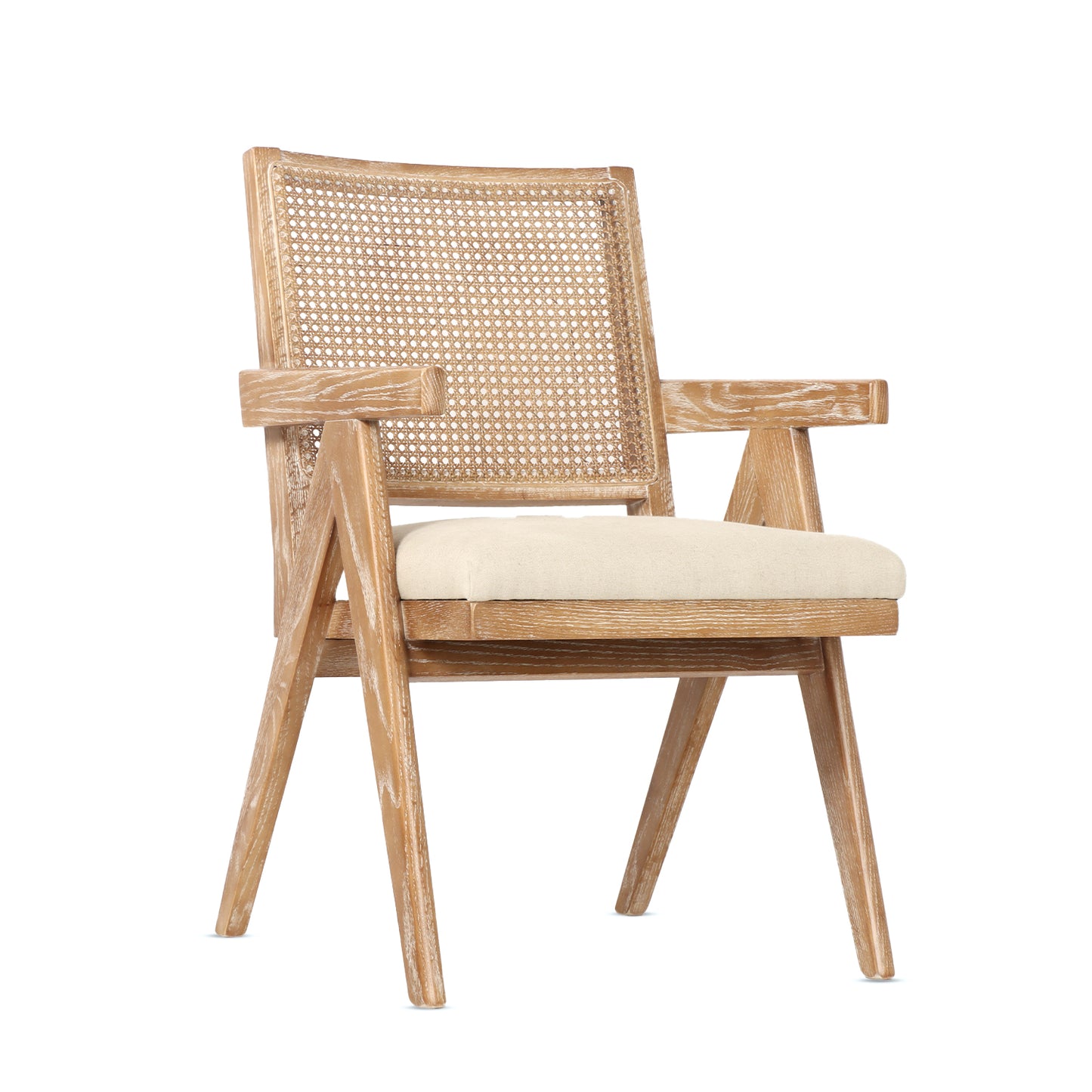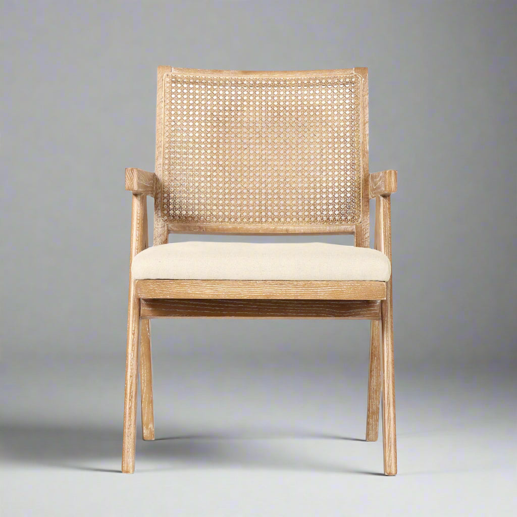 The Tokai Thorne Dining Chair boasts a sturdy oak frame with a cozy fabric upholstered seat and a stylish rattan backrest. Measuring 580 W x 610 D x 890 H, it combines comfort and elegance to enhance your dining experience.