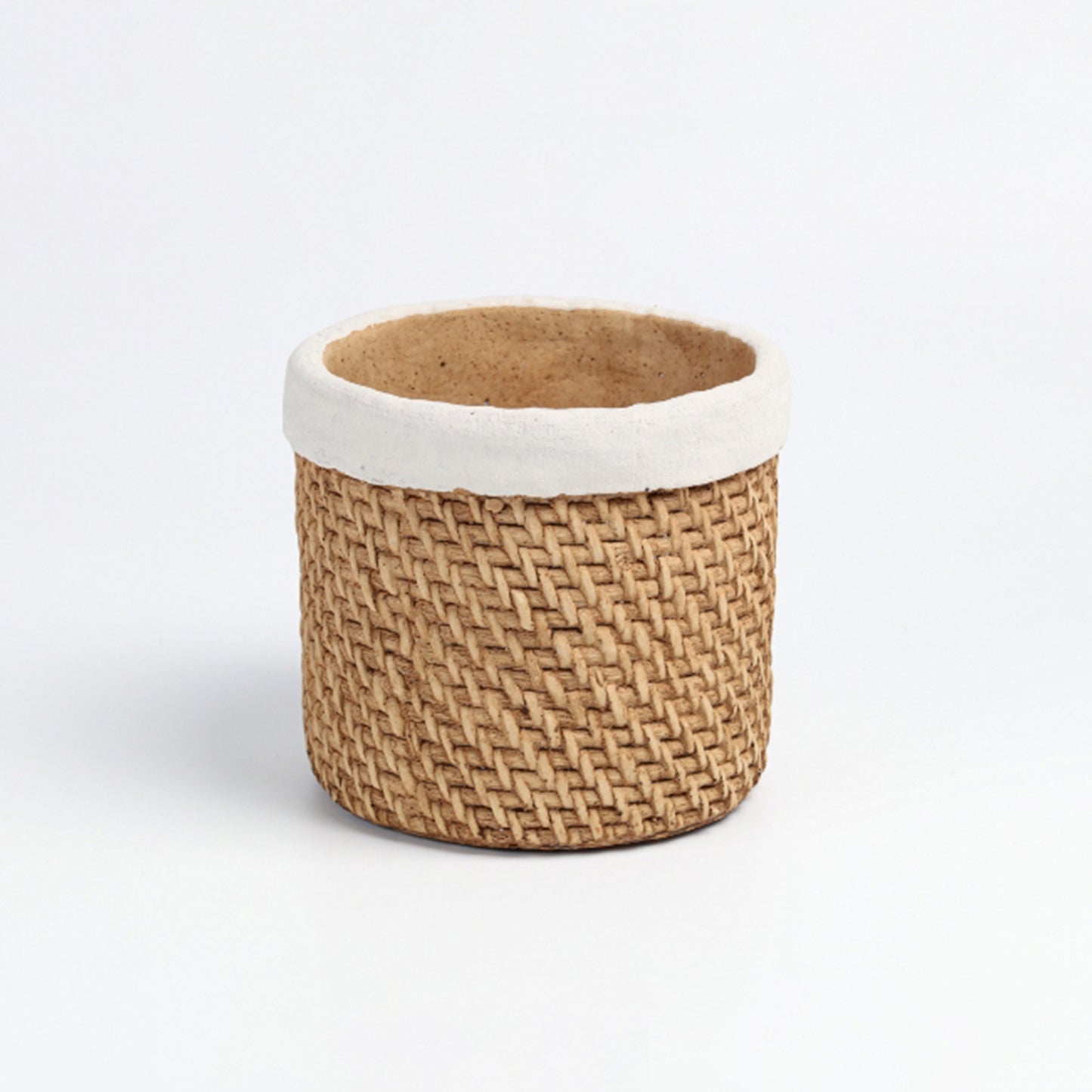 Enhance the beauty of your green space with the Timeless Terracotta Planter 2. This planter features a unique combination of cement and rattan, providing durability and a touch of organic style. Available in small and large sizes, it is the perfect addition to any outdoor or indoor garden setting.
